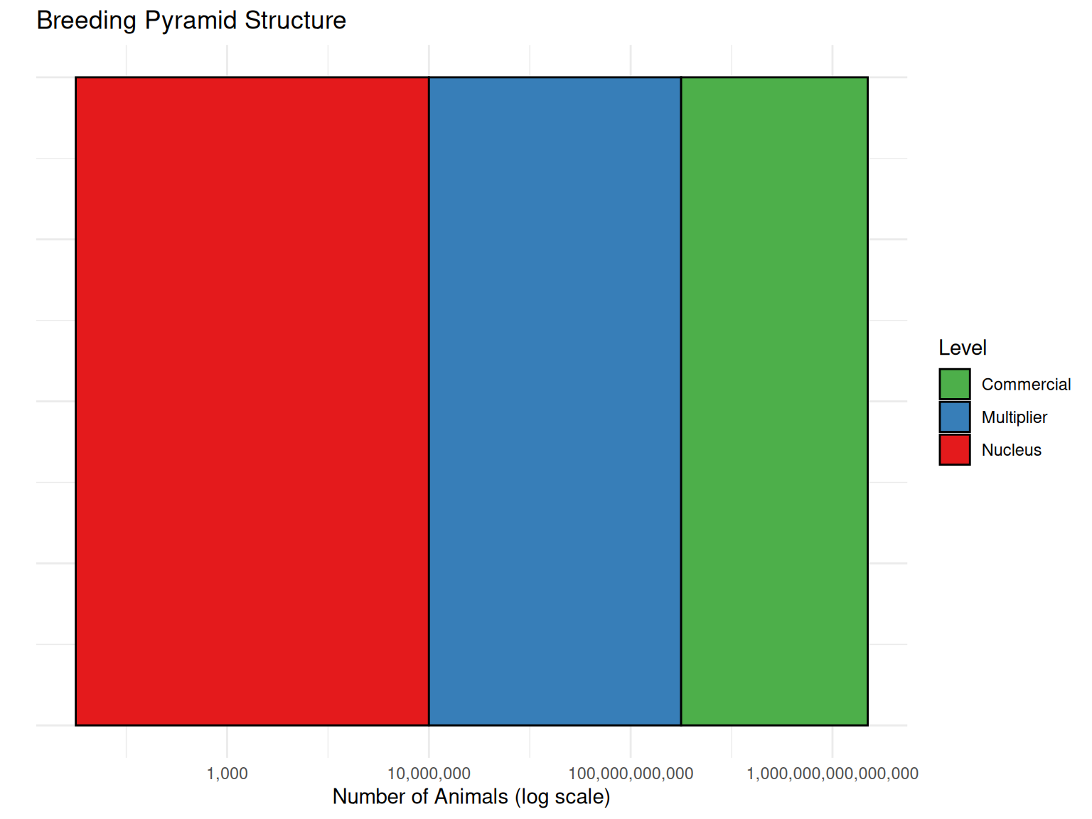- Describe the hierarchical structure of a breeding pyramid in livestock (Nucleus, Multiplier, Commercial)