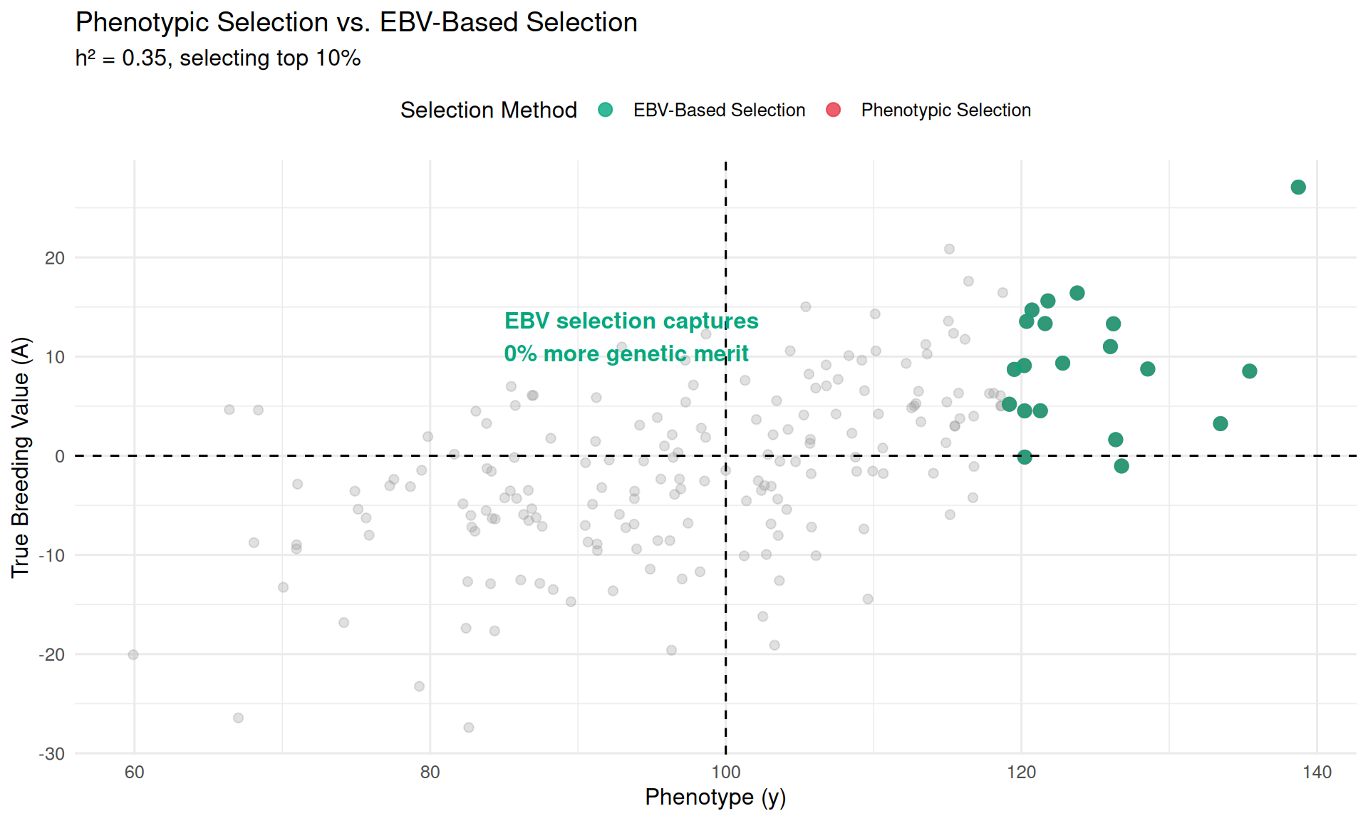 In Chapter 2, we discussed how to measure phenotypes accurately and why high-quality data collection is essential. We introduced the concept of True Breeding Value (TBV)—an animal’s true genetic merit that determines what it passes to its offspring. But we didn’t yet address how phenotypes and breeding values relate to each other mathematically. That’s the purpose of this chapter.